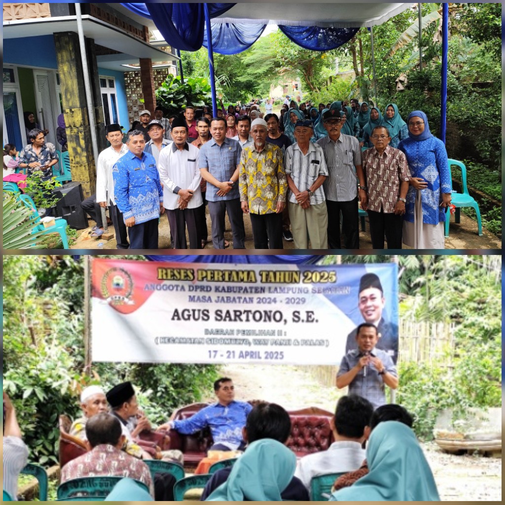 Lamsel, negerikoe.id – Anggota Dewan Perwakilan Rakyat Daerah (DPRD) Lampung Selatan, Agus Sartono, SE, melaksanakan kegiatan reses masa persidangan kedua tahun 2025 di Desa Budidaya Kecamatan Sidomulyo Kabupaten setempat, Kamis (17/4/2025)