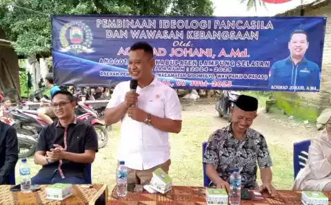 Lamsel, negerikoe.id – Anggota DPRD Kabupaten Lampung Selatan dari Fraksi Partai Demokrat Achmad Johani, menggelar kegiatan Sosialisasi Ideologi Pancasila dan Wawasan Kebangsaan (IPWK) yang diputuskan di desa Sidowaluyo Kecamatan Sidomulyo Kabupaten setempat, Minggu (6/7/2025).