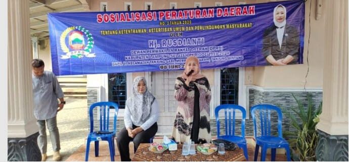 Lamsel, negerikoe.id – Anggota Dewan Perwakilan Rakyat Daerah (DPRD) Lampung Selatan (Lamsel) dari Fraksi PAN Rusdianti, kembali menggelar Sosialiasasi Peraraturan Daerah (Sosperda) Nomor: 3 tahun 2020 tentang Ketentraman, Ketertiban Umum dan Perlindungan Masyarakat.