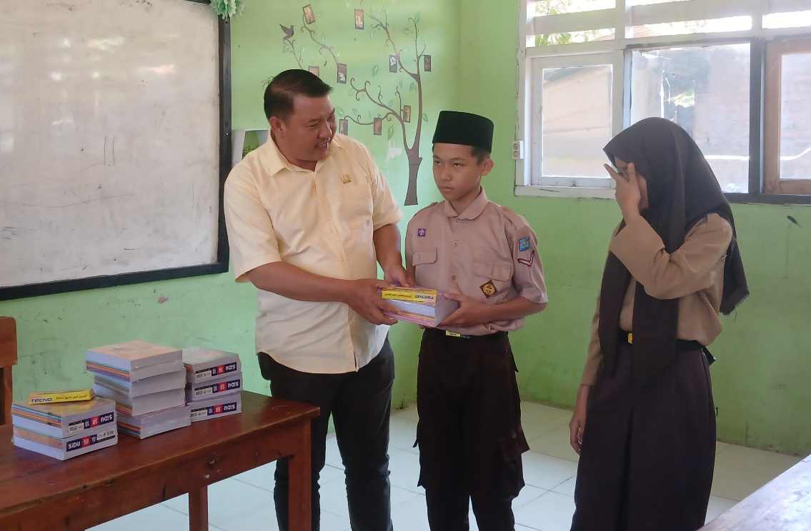 Selanjutnya secara pribadi Ahmad Muslim memberikan seperangkat buku tulis kepada perwakilan Siswa-siswi MTS Islamiyah Ketapang kelas 8 C secara simbolis. (Red)